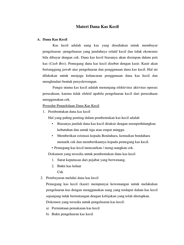 Dana Kas Kecil Dan Penerapannya Krishand Blog